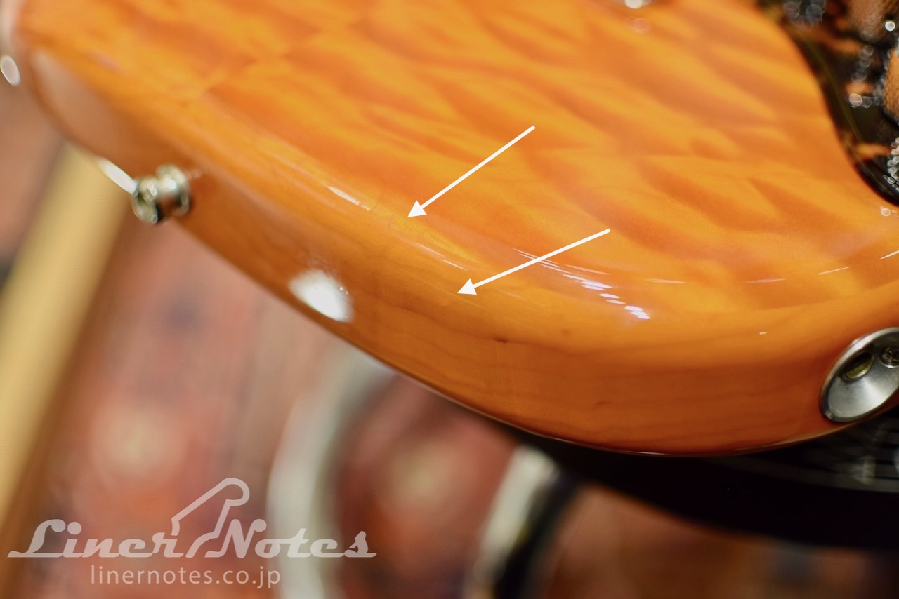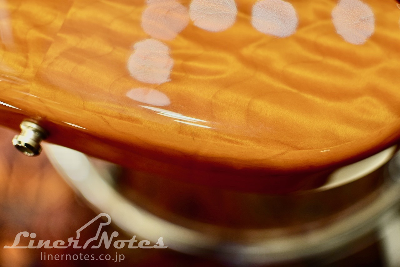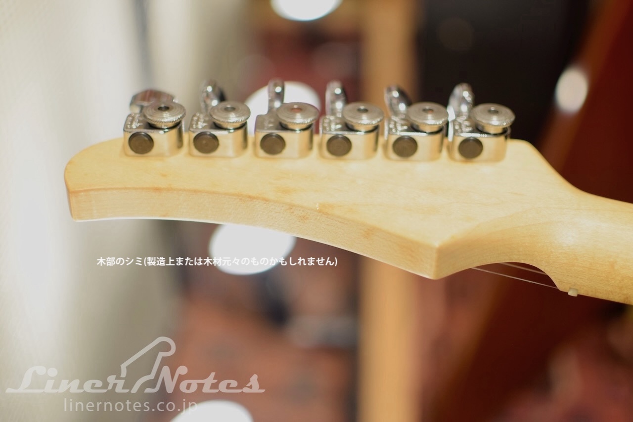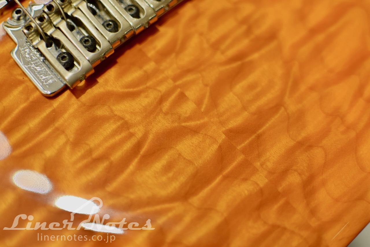 ボディはキルトメイプルトップにアッシュバック、メイプルネック、HSHピックアップ配列(XS-3仕様)、Suhr DSV/Xotic ST60/Suhr DSHピックアップ、フロント・リアコイルタップスイッチ、Sperzelロックペグ、Willkinson VG-300ブリッジ、5wayセレクター、1Vol.2Tone仕様になります。