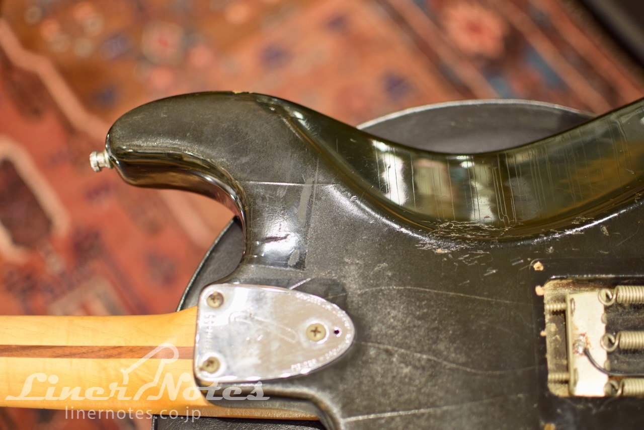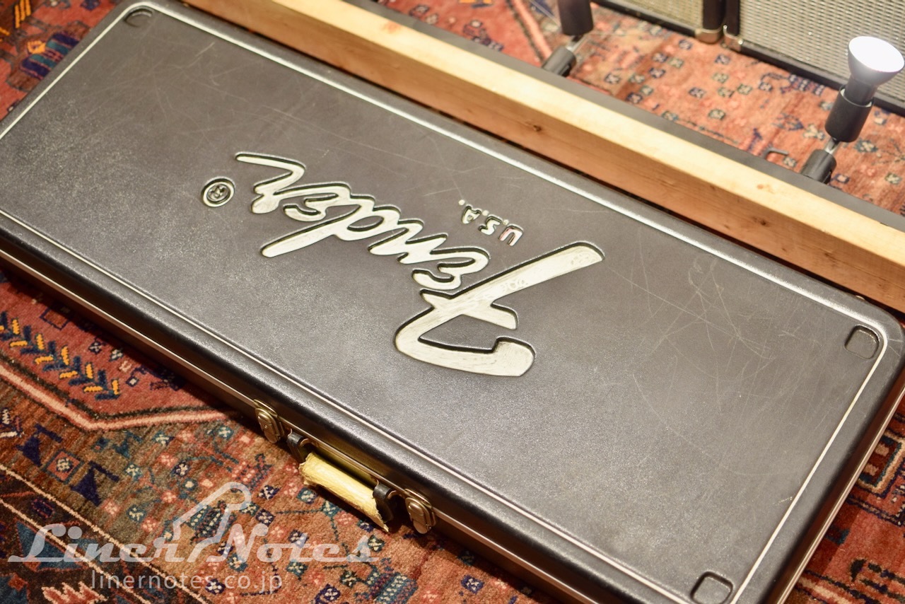 ケースは後年のFenderハードケースが付属します。ロゴ部分にペイントが施されています。