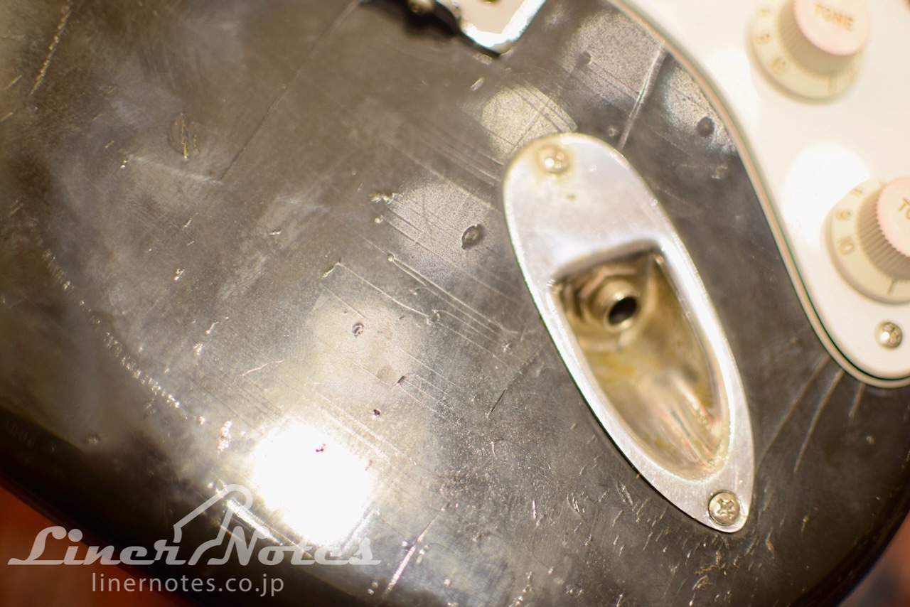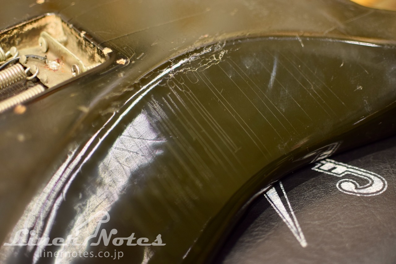 ラッカー特有の塗装変質は全体的に見られ、ややざらざらしたような質感になります。ウェザーチェックもびっしりと入っています。