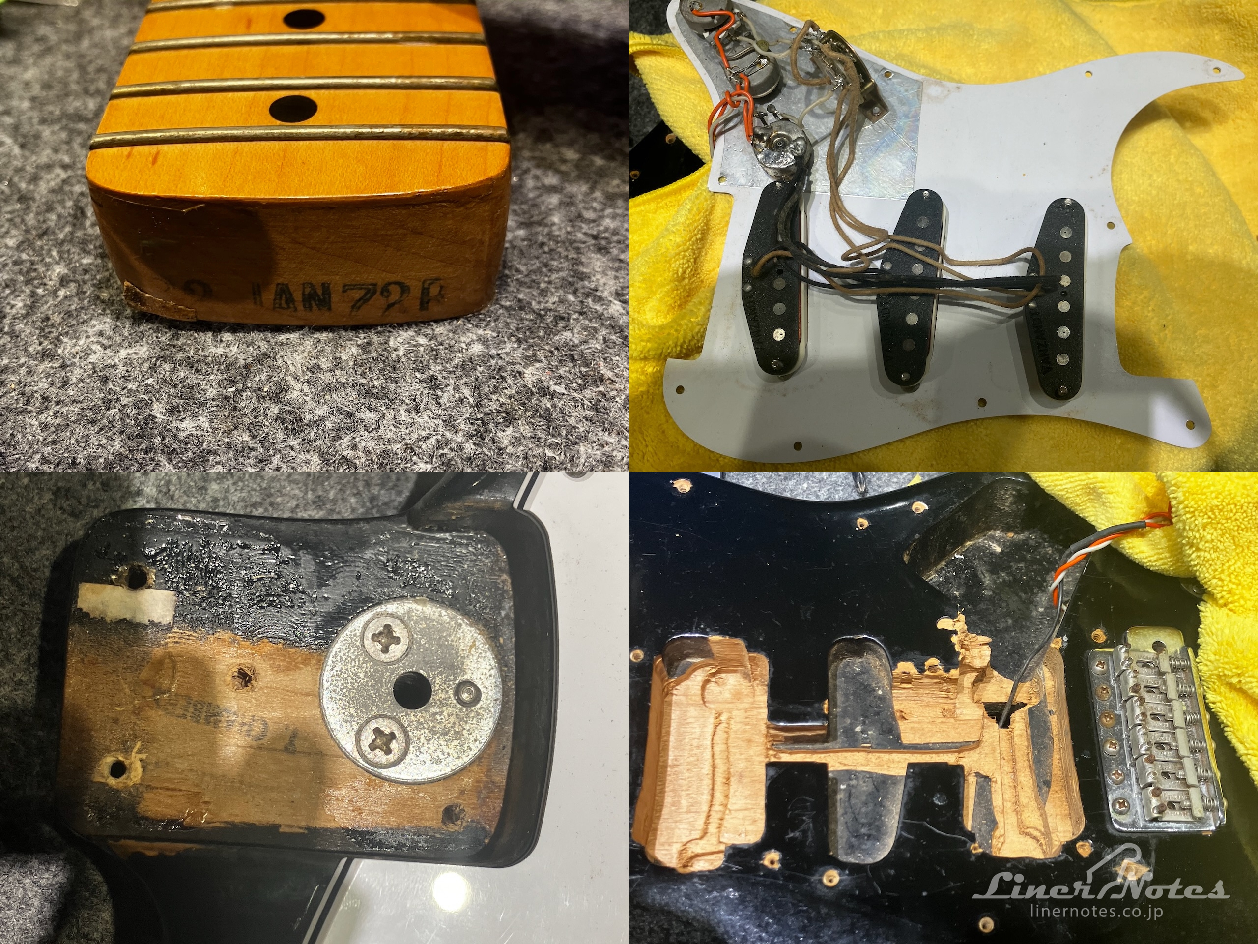 現状でVanzandtストラトピックアップ、5wayセレクター、Sperzel ペグ、ピックガード交換(過去にHSHへ変更していた改造歴有)、その他パーツ変更・修理歴等見られますが、